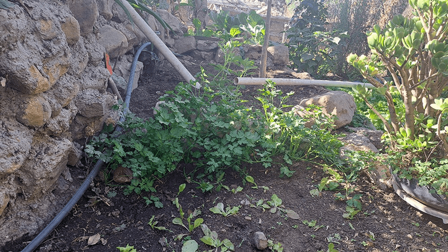 María vive con sus hijos y su esposo albañil. Aunque en total son ocho personas, aún les queda espacio para el perejil, la acelga, la lechuga, el cilantro, el repollo y la hierba buena que crecen en diminutos terraplenes armados con la piedra extraída en el lugar. Lo que más cuida María es el agua, la que recicla de todas las formas, incluso la que tiene grasa porque después de lavar los platos, la echa a una planta de cartuchos que la acepta y hasta brillosa se pone.
