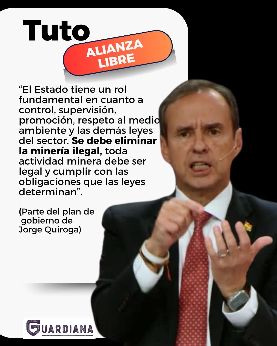 Quiroga le dedica en su plan de gobierno a la minería en general siete párrafos. Empieza indicando que “Bolivia posee un gran potencial minero, y es la minería la principal fuente de divisas para el país en la actualidad; sin embargo, el verdadero potencial minero es mayor aún con políticas adecuadas, que permitan atraer mayor inversión nacional y extranjera y, por tanto, desarrollar todo el potencial que tiene”.