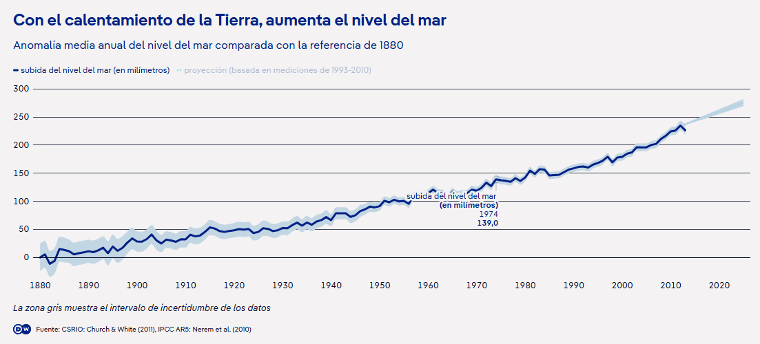 Según la Organización de Investigación Científica e Industrial del Commonwealth (CSIRO), la agencia estatal de Australia para la investigación climática, el nivel del mar ha aumentado casi 25 cm en los últimos 140 años. Aproximadamente un tercio de este aumento se ha producido solo en los últimos 25 años.